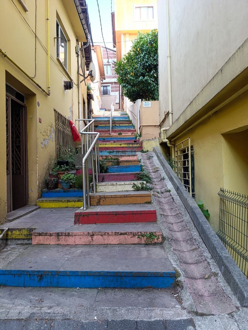 Köşke doğru yürürken, araç girmeyen bu sokak sizi adeta zamanda bir yolculuğa çıkaracak. Gökkuşağının renkleriyle bezeli bu nostaljik atmosfer, şehrin tüm gürültüsünden uzaklaşarak adeta bir masal diyarının kapılarını aralıyor. Her adımınızda hissedeceğiniz huzur, bu özel köşkün sunduğu ayrıcalıklı yaşamın ilk ipuçlarını veriyor. Bu sokak ve merdivenler, sizi sadece eve değil, aynı zamanda aradığınız dinginliğe taşıyan büyülü bir yol.