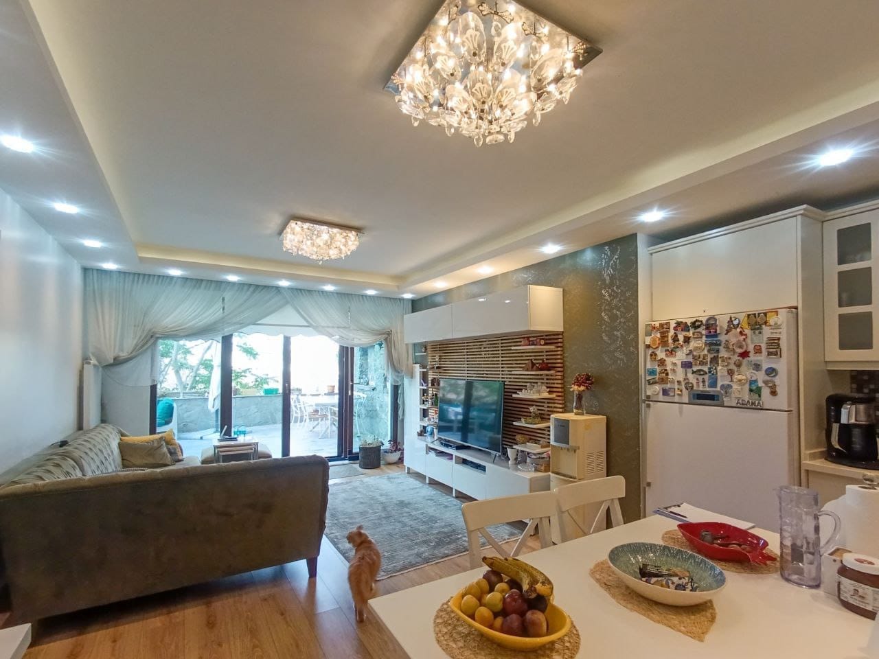 Günün her anı, mutfağın modern ve zarif detayları gün ışığıyla aydınlanırken, bahçeye açılan kapı sayesinde doğanın tazeliği içeri doluyor. Çocuklarınız bahçede özgürce oynarken, siz de onlara sağlıklı atıştırmalıklar hazırlayabilir, doğayla iç içe bir yaşamın tadını çıkarabilirsiniz. Sabah kahvaltılarında kuş sesleri, öğleden sonra çay keyfinde ise çiçek kokuları size eşlik edecek.